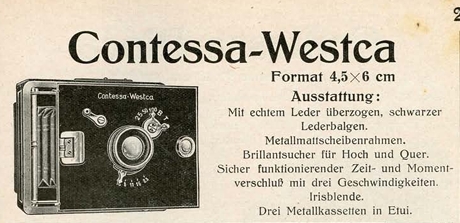 Die Westca hingegen ist die Kamera, die bei Umstätter und auf photographica-world.de als "Vier-Sechs" firmiert und so aktuell auch bei ebay angeboten wird. Deren Spezifikationen (Objektiv, Verschluss) passen aber nicht zu den Angaben von Hanneke, das ist m.E. eine falsche Zuschreibung, wie sich leicht zeigen lässt.