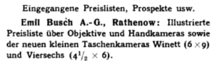 hab vielen Dank! Das ist sehr interessant und zugleich etwas ernüchternd. Denn daraus ergibt sich ja, dass die "Viersechs" tatsächlich ein neues Modell aus dem Jahr 1916 ist (in den Sammlerkatalogen wird sie übrigens ins Jahr 1920 datiert) – oder zumindest eine starke Überarbeitung. Nun dachte ich spontan daran, dass es sich um die Neubearbeitung der Bébé handeln könne, denn im Ica-Katalog 1912/13 wird die Bébé 40 noch in der alten Zulauf-Ausführung mit Guillotine-Verschluss und anderer Frontplatte vorgestellt (siehe auch --> https://knippsen.blogspot.com/2025/12/zulauf-bebe.html). Aber der Busch-Katalog von 1913 zeigt ja auch schon die 'neue' Bébé mit Compound-Verschluss. Das kann also nicht die entscheidende Änderung gewesen sein.