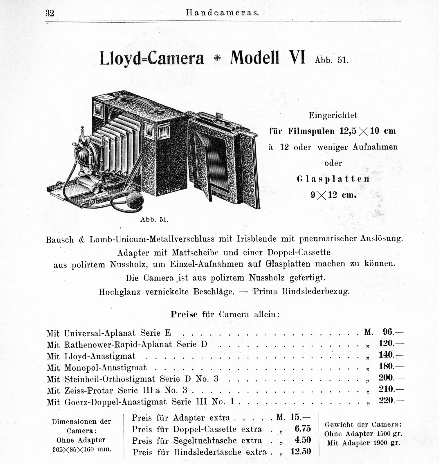 Hüttig Lloyd Modell VI, 9x12 für Platte und Film von 1902