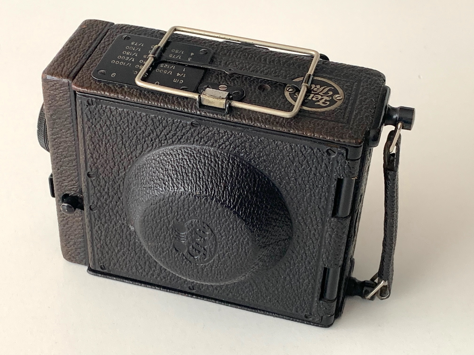 Vor dem Hintergrund des Beschreibungstextes überrascht es, dass das vorliegende Exemplar ‚nur‘ mit einem gewöhnlichen Tessar 4,5/8 cm ausgestattet ist. In den zeitgenössischen Katalogen wird diese Bestückung nicht erwähnt, dementsprechend auch nicht im Carl Zeiss Kamera-Register von Otto; es sind aber weitere Exemplare bekannt, vgl. auch die Abb. bei Abring (Nr. 344).