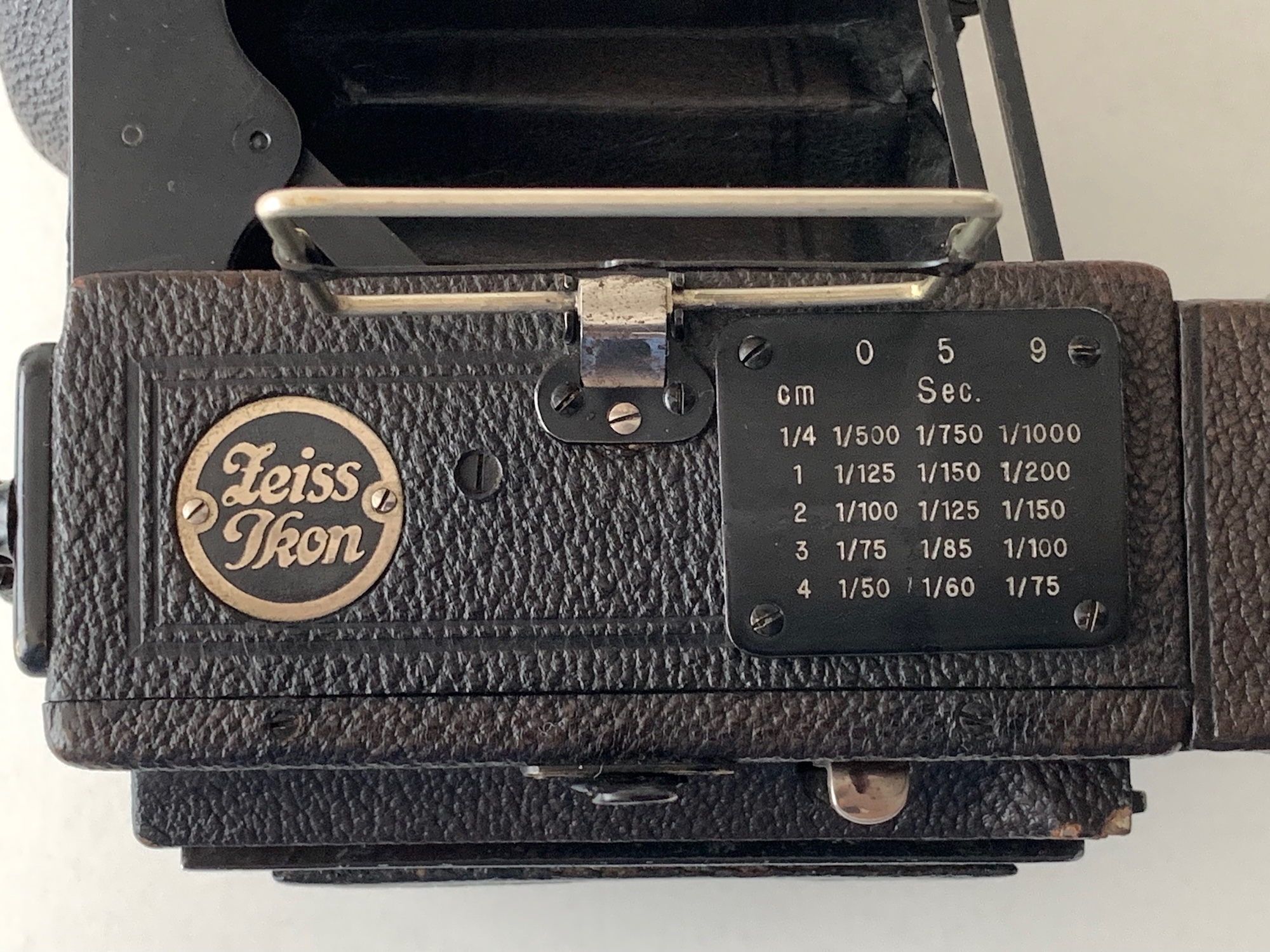 Die Kamera war, wie schon erwähnt, 1925 als Neuheit gelistet; sie erscheint dann auch im ersten Zeiss Ikon-Katalog von 1927 und war wohl bis 1929 im Programm. Bei diesen Kameras aus der Übergangszeit stellt sich die Frage nach der Zuordnung: Ist es eine Ica- oder schon eine Zeiss Ikon-Kamera? Das vorliegende Exemplar trägt am Gehäuse eine Zeiss Ikon-Plakette, dürfte also frühestens Ende 1926 von Zeiss Ikon verkauft worden sein. Die Bauteile sind aber mit Ica beschriftet, gebaut wurde sie also noch in der Ica-Ära, dazu passen auch die Seriennummer mit vorangestelltem K und das Objektiv, das gem. Seriennummer aus dem Jahr 1922/23 stammt (vermutlich Lagerware). Man kann das vorliegende Exemplar wohl als Ica-Kamera klassifizieren. Da das Mattscheibenrückteil G2 noch das alte Ica-Logo (Pentagramm) aufweist, dürfte es wohl von einer anderen, älteren Kamera mit Anlegefalz (z. B. Bébé) stammen, diesbezüglich war über Jahrzehnte volle Kompatibilität gegeben.