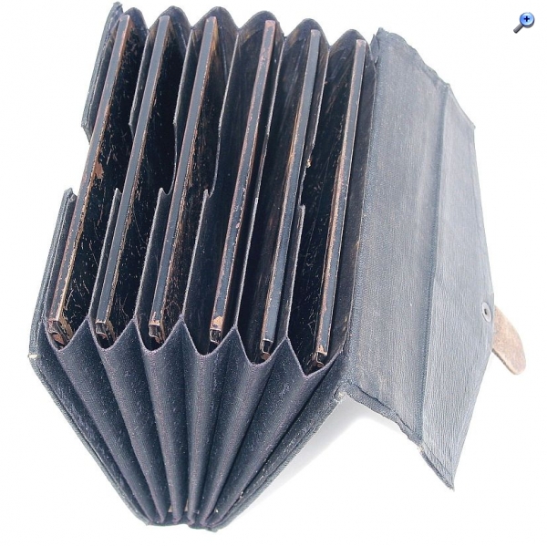 Die Tasche fasst 6 Kassetten von einem Typ, der mir unbekannt ist. An meine Zeiss Ikon Ideal 250/7, an der ich ICA-Kassetten verwende, passen sie jedenfalls nicht. In der Breite würden sie passen, sind aber in der Länge um 2..3mm zu kurz. Einen Falz (im technischen Sinne) an der Unterseite haben sie auch nicht.