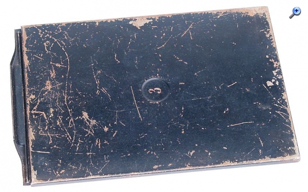 Die ganz links unten ist eher keine, sondern eine allgemeine DIN A5-Karteibox (für Karten 147x210mm). Die große Box ist für 2 Reihen Kassetten 10x15. Sie enthielt demgemäß unter anderem 10x15-Millionfalzkassetten in zwei Breiten - passend für Linhof und schmälere für mir noch unbekannte Kameras. Die Symbole für Ernemann, Agfa(je 9x12) und Linhof (10x15) sind wohl erkennbar, rechts daneben 3 unbenannte (für 6.5x9 bzw. 9x12).