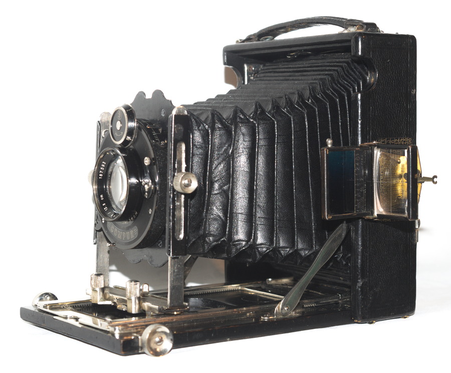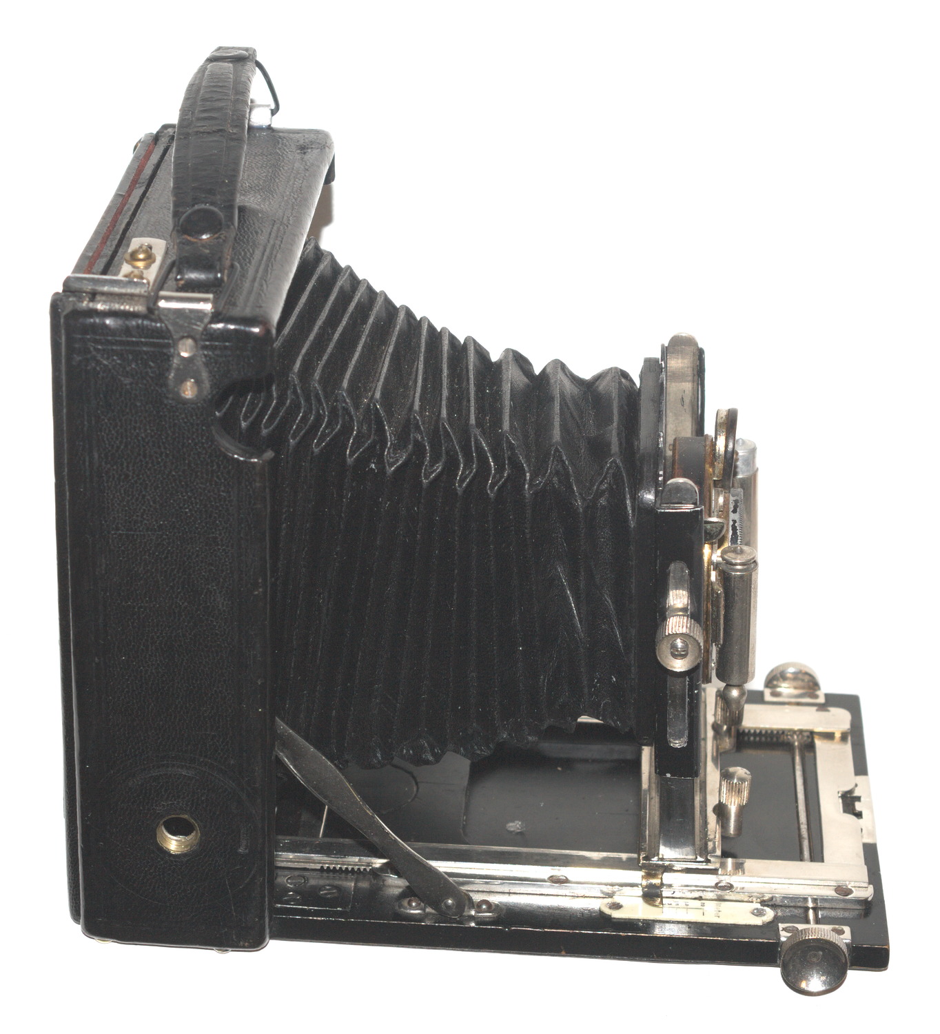 Besitze übrigens eine schöne 9x12 Laufbodenkamera des Nachfolgers Agfa, eine Agfa Isolar mit der cognac-farbigen Belederung. Daß es sich dabei um eine Luxusversion handelt ist eine Erfindung der Sammler und der Photographica-Auktionshäuser. Im Katalog von 1930, den ich im Original besitze, steht da nur "m. braun. Bezug". Der Preis ist gegenüber der schwarzen Version um 7 RM höher - 145 vs. 138 RM. Es gab natürlich damals echte Luxusversionen einiger Kamerahersteller, aber da waren dann i.d.R. die Metallteile vergoldet und nicht vernickelt oder verchromt.