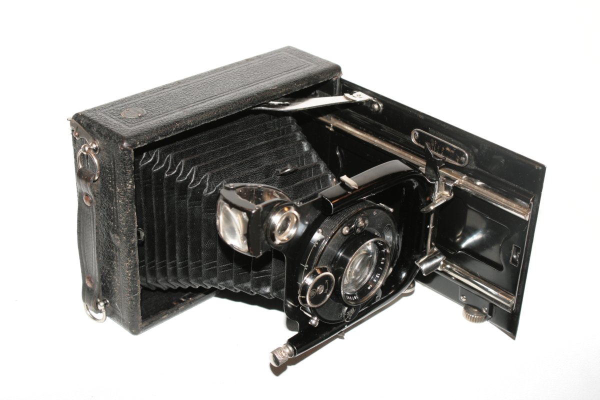 So einen Fall habe ich hier. Sieht fast aus wie eine ganz gewöhnliche bessere Welta, sehr solide konstruiert; Rückteile prinzipiell(!) damit austauschbar. Laufschiene die einer Oberklassekamera (einteilig und abknickend, Standarte verläßt sie beim Zusammenklappen nicht). Aber viel zuviele Abweichungen: Standartenrädchen kreuzgeriffelt, Auszüge ganz anders gestaltet und schmäler uswusf.