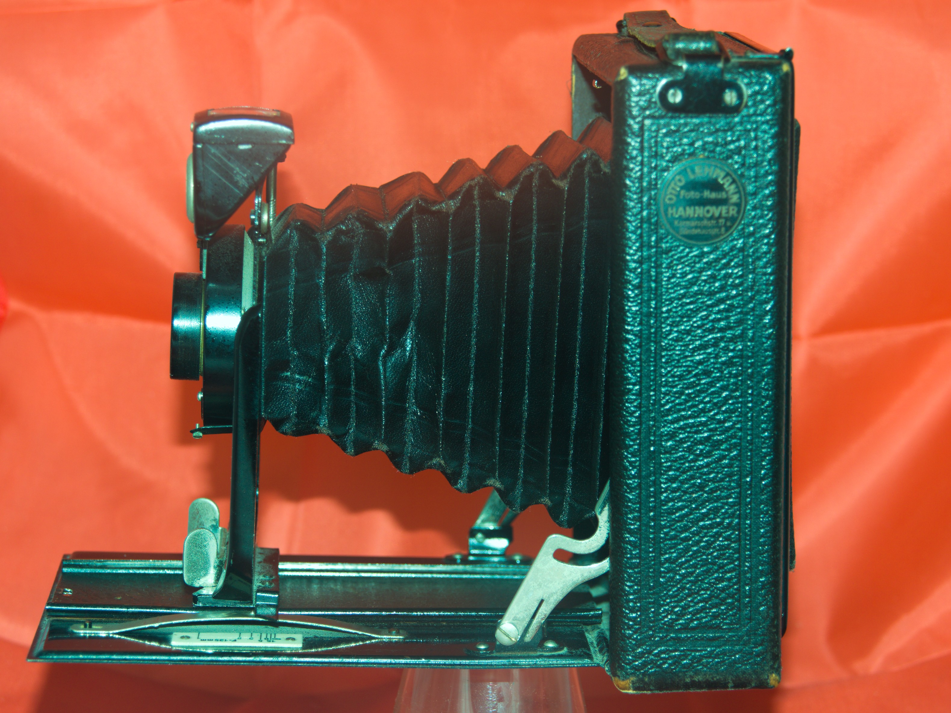 gestern habe ich als Beifang zu einer Zeh Primus eine ungekennzeichnete Plattenkamera 9x12 mitgenommen. Nach den Bildern hier im Forum müßte es eine Beier oder Erko sein. Interssant (für mich) ist, daß sie von einem Händler in Hannover verkauft wurde (FOTO-HAUS Lehmann). Noch interessanter ist, daß der Pappdeckel vom Laufboden abgefallen ist und darunter Fragmente einer Zeitung zum Vorschein kamen. So kann man relativ sicher sagen, daß die Kamera nach dem 21.April 1929 gebaut wurde und aus dem Dresdner Raum kommt. Daran sieht man, daß es sich hier eher um eine Kamerawerkstatt handelte als um ein Kamerawerk. Heute würde man wieder Manufaktur sagen.
