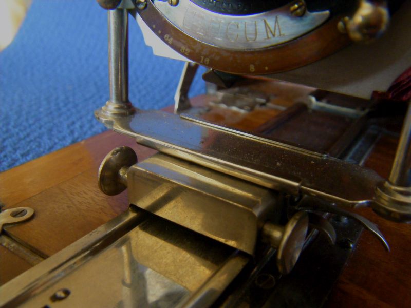 Grundtyp 1 Der kastenförmiger Schlitten wird von einer bügelförmigen Handhabe bewegt: (B+S, 9x12, Extra Rapid Aplanat, Bausch+Lomp Verschluss)
