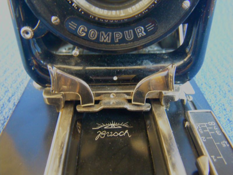 Ich hatte schon in diverse Ecken geschaut, in die meine Unterlagen nicht viel Licht bringen konnten, am naheliegendsten war wegen des Objektivs Busch. In diesem Fall müßte es die Busch Doppel-Liliput sein. Mangels Unterlagen kann ich dazu nichts sagen, aber daß Ihre Kameras andere Objektive haben, sieht wie ein "Erledigt"-Haken aus. Momentan sehe ich nur eher sehr bescheidene Ähnlichkeiten zu anderen Marken. Die zu Bülter & Stammer dürften eher oberflächlich sein. Bleibt Glunz. Ich habe nur drei Kameras, bei denen der Triebknopf eingebettet ins Blech des Laufbodens ist, also nicht seitlich herausragt, und zwei davon sind Glunz. Zugegeben - das ist äußerst dürftig, selbst, wenn die Spitze in der Mitte der unteren Spreizenhalterung auf Glunz hinweisen sollte. So nebenbei: ähnliche Form haben auch die oberen Spreizenhalterungen.