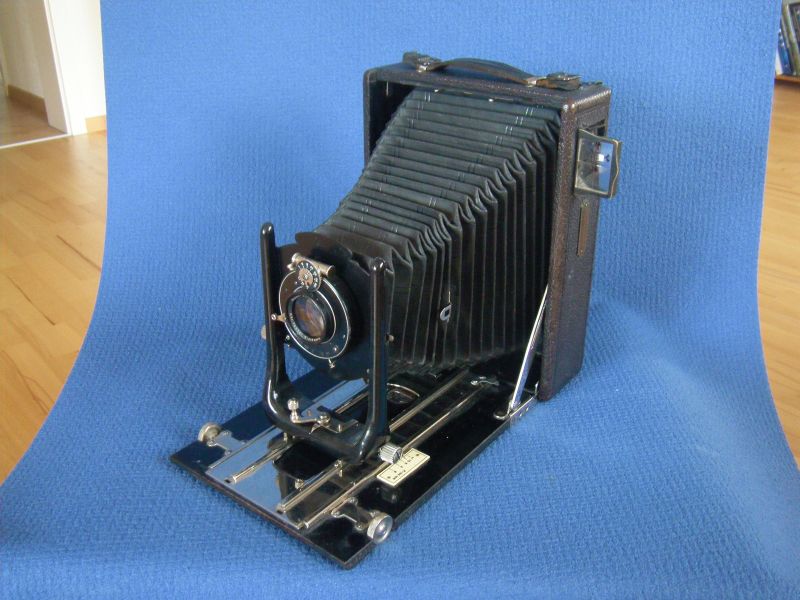 in der Blütezeit der Platten-Laufbodenkameras hat es neben den großen Herstellern diverse kleine Hersteller dieses Kameratyps gegeben. Es war damals nicht unüblich, keine oder nur wenige Hinweise auf den Hersteller an den Kameras anzubringen.