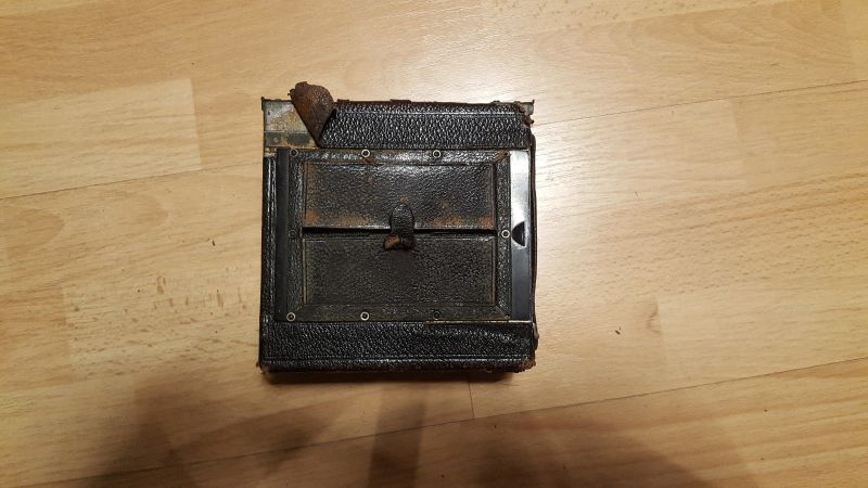 Sieht so richtig nach Arbeit aus Mit meiner letzten "Neuen", einer Glunz Mod. 600, kann ich da nicht auftrumpfen - vorn 0/8/15-Auffrischen, ohne zu übertreiben; der Lichtschacht war aber ein wenig heikel - vorher ziemlich verkorkst repariert*), und wohl deshalb das dünne Blech stark verbeult, das feine, empfindliche und gedehnte Leder an den Rändern teils gerissen. Habe mich mit einem Kompromiß zufrieden gegeben, um keine Substanz zu verlieren. Lichtschacht öffnet und schließt wieder einigermaßen - und das, ohne deutlich 'emporzuragen'. Für mehr hätte ich ihn zerlegen müssen - die Klappe war etwas asymmetrisch eingesetzt worden und blieb so (und der Kleber war 'modern' und deshalb zu schwer lösbar. Ich verwende wegen der späteren Lösbarkeit zwar auch keinen Knochenleim, aber vorzugsweise wasserverdünnten Holzleim). Auf beiden Seiten war das zuvor offensichtlich auch gerissene Seitenleder mit sehr dünnem Blech gefasst und das ans Holz angenagelt worden. Auf der 'knappen' Seite stand es zum einen über, zum anderen traf es die Klappe. Möglicherweise war deshalb die Mattscheibe zersprungen und mit Tesa geklebt. Auf dieser Seite entfernte ich dieses Blech möglichst vorsichtig und ersetzte es durch dünnen Stoff, und natürlich war auch eine neue Mattscheibe fällig.