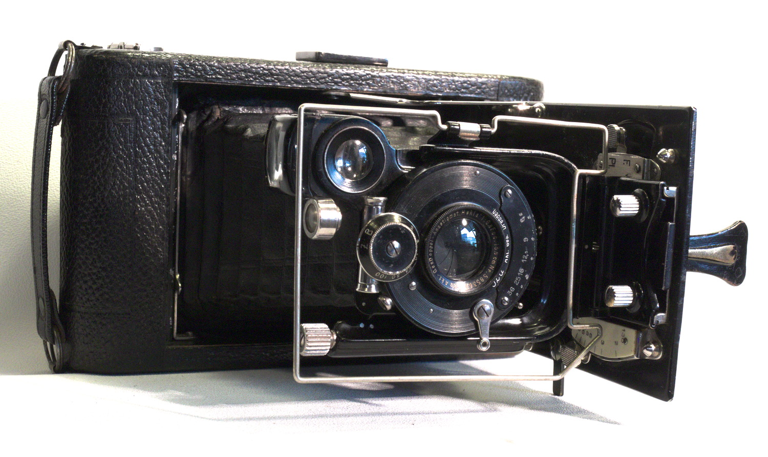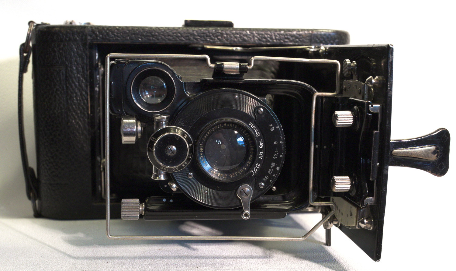 schon ein Weilchen habe ich gestern gesucht, was ich mir da zugelegt hatte. Diese ICA hat nämlich einen Ersatzledergriff - und damit fehlt die Modellbezeichnung. Und Bilder genau dieses Modells, einer ICA 511 Lola, sind überraschend selten zu finden - es ist zwar öfter von einer ICA 511 die Rede, aber einer Halloh - und die hat immer eine andere Entfernungseinstellung.