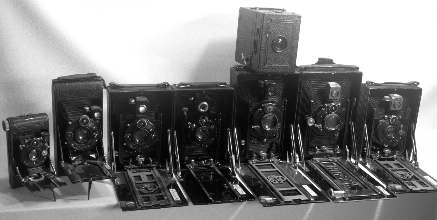 Rollfilm-Laufbodenkameras wurden diversen Größen von 4x6,5 bis 8x14 angeboten. Die