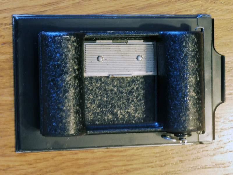 Hallo Rainer, diese Schienenführung ist selten, aber ich habe Abbildungen von Wirgin-Kameras die so ausgeführt sind: die silberfarbene bewegliche Schiene wird oben durch zwei schwarze entsprechend geformtes Bleche (vorne und hinten) gehalten. Die schwarzen Bleche sind mittig durch Schrauben befestigt. Der Triebknopf ist nicht am Rand des Laufbodendeckels, sondern ragt etwas weiter drin durch eine Öffnung im Laufbodendeckel. Wie gesagt, eher selten, gibt es aber mehrfach. Die Bilder kann ich leider nicht zeigen, da ich darauf keine Rechte habe.