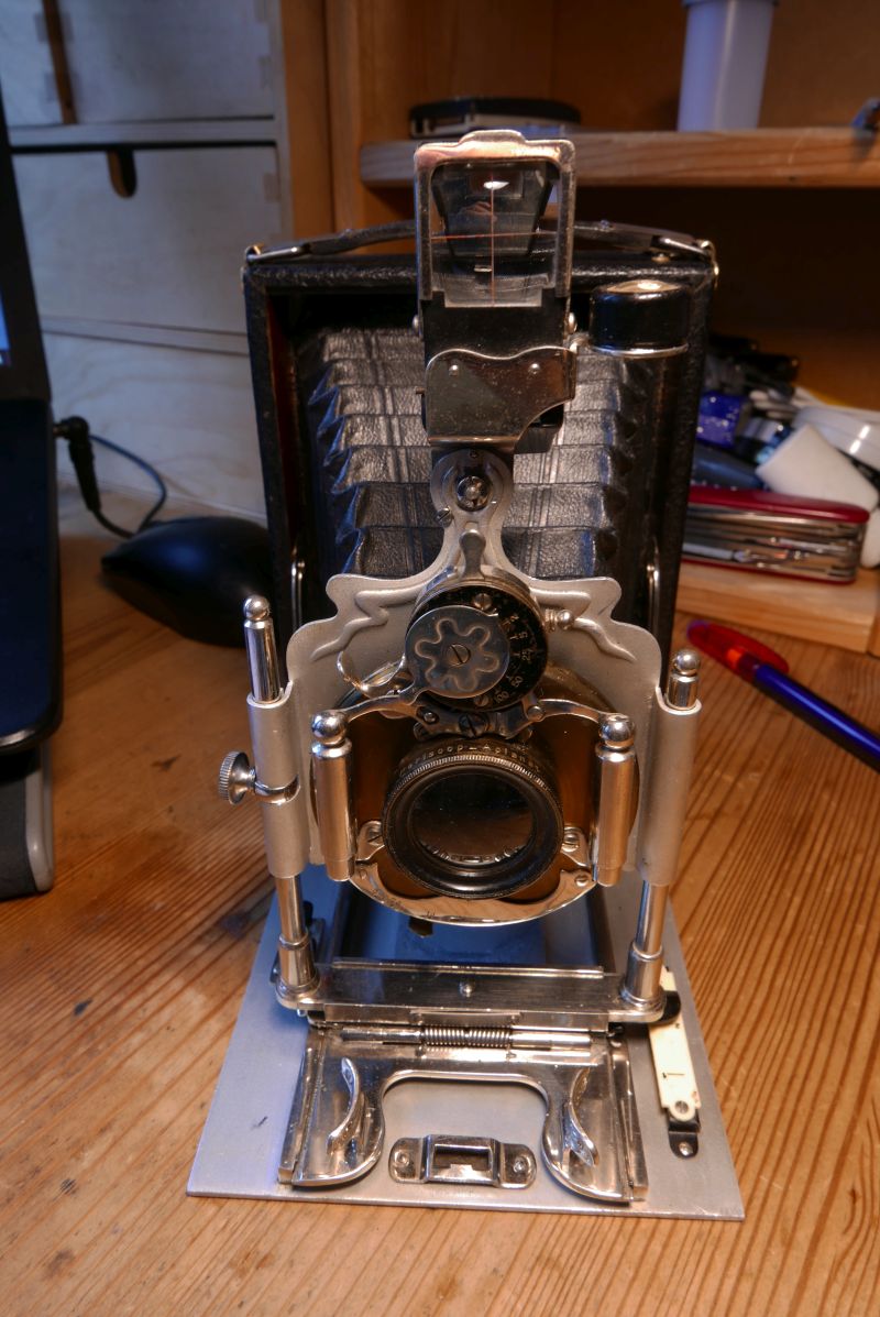 Ich bin gestern mit dem Restaurieren eine Emil Wünsche Minimal 600 Laufbodenkamera von ca. 1905 fertig geworden. Nun strahlt sie wieder im alten Glanz und ist wieder voll funktionstüchtig.