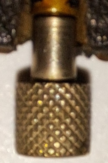 Die Rändelmutter sieht fast aus wie die Einstellschrauben bei uralten Weckern. Ich hatte als kleines Kind - schon immer experimentierfreudig - so eine Rändelschraube abgedreht und in die Nase gestopft - meine Mutter war in heller Aufregung und konnte sie entfernen.