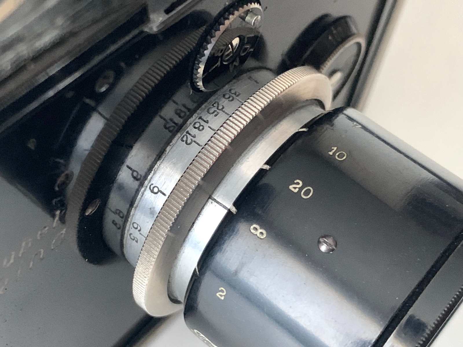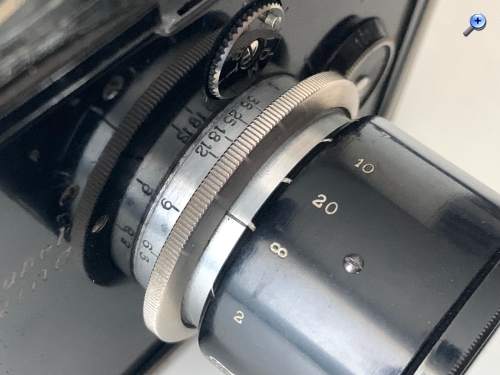 Die Handhabung wird in der zeitgenössischen Bedienungsanleitung ausführlich erklärt; zu berücksichtigen ist nämlich, dass es eine eigene Einstellfassung besitzt. Daher muss beim ersten Gebrauch des Makinars die passende Unendlich-Einstellung der Kamera ermittelt und auf der Entfernungsskala markiert werden. Die Kamera wird, wenn das Makinar benutzt wird, auf die ermittelte Position eingestellt; die Fokussierung erfolgt dann über die Einstellfassung des Makinars. Es handelt sich nicht um eine gefettete Einstellschnecke, sondern um „Schneckenzüge“, in denen „Führungen des schwarzlackierten Hauptkörpers“ laufen, daher ist beim Drehen lt. Anleitung ein gewisser Druck bzw. leichtes Ziehen erforderlich. Das kann ich nicht unbedingt bestätigen; der Fokus läuft ein bisschen hakelig wie ein modernes Objektiv mit trockengelaufenem Schneckengang. Das Objektiv besitzt eine eingebaute Irisblende (f 6,3–36).