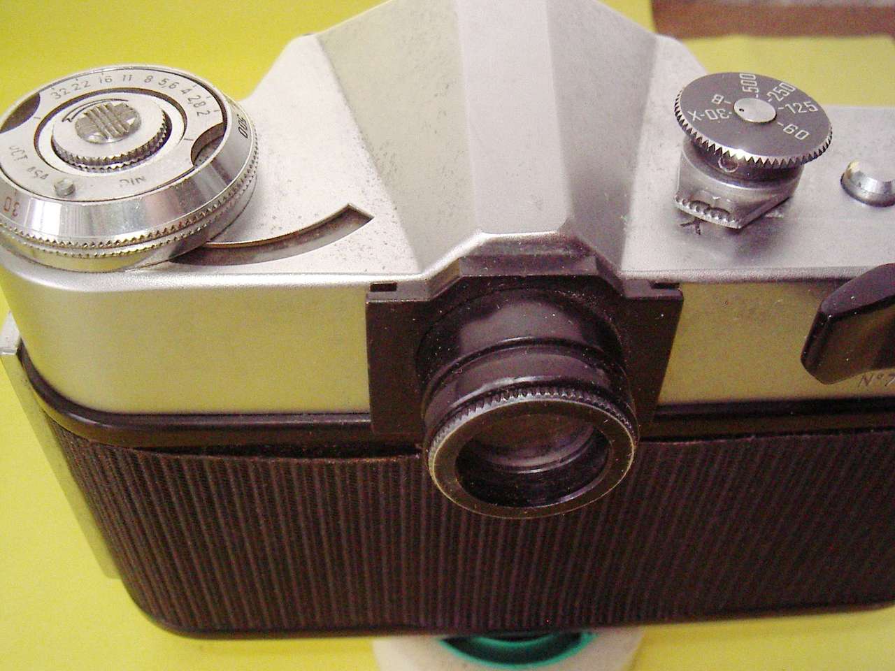 Der verlängerte Suchereinblick an der Zenit ES. Der Selenbelichtungsmesser funktioniert übrigens nach wie vor.