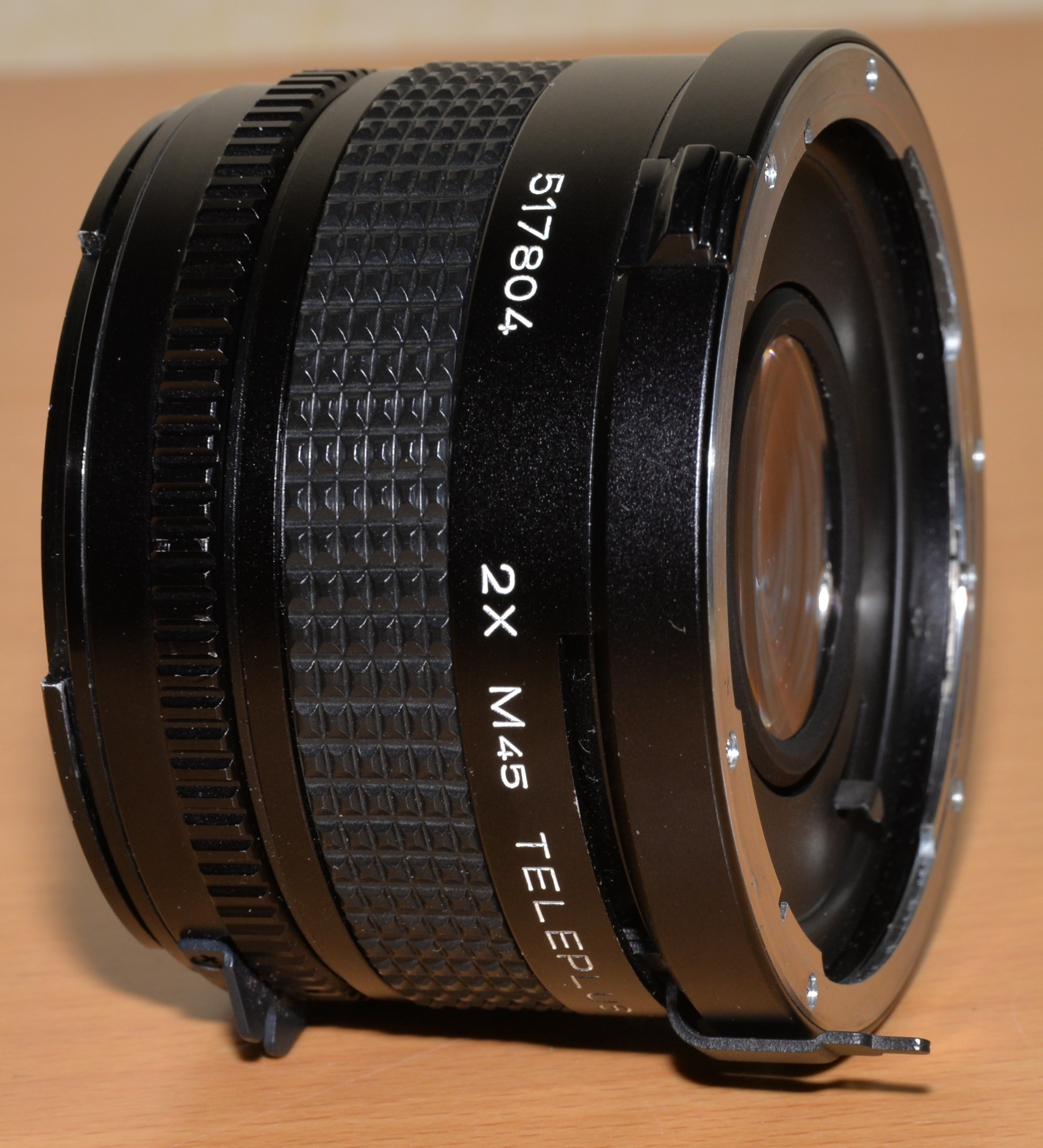 Wie für fast alle Spiegelreflexsysteme gibt es auch für die beliebte Mamiya 645er Reihe einen Telekonverter der die vorhandene Brennweite verdoppelt.