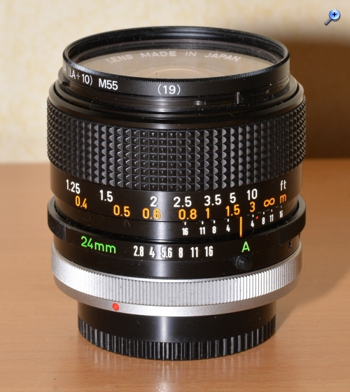 Das 24mm Objektiv erschließt dem Benutzer einen Bildwinkel von 84° ein starkes, in manchen Situationen schon extremes Weitwinkelformat. Mit seinen Abmessungen und dem noch erträglichen Gewicht passt es in fast jede Jackentasche.