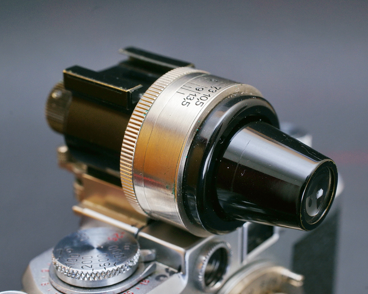 Für die unterschiedlichen Brennweiten benötigte man unterschiedliche Sucher. Von 1933 bis 1940 wurde dieser Universalsucher mit Bezeichnung VIDOM gefertigt. Damit konnten alle seinerzeit produzierten Objektive mit Brennweiten von 3,5 cm bis 13,5 cm bedient werden. Leider war das Bild spiegelverkehrt. Beim Wechsel zum Hochformat musste der vordere Einblick um 90° gedreht werden. Zum Ausgleich der Parallaxe diente der kleine Hebel.