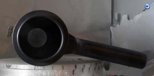 Die beiden Schrauben sind einmal zu Feststellung des Fokus und einmal zum feststellen des Pistolengriffs bzw. des Objektivs im Griff. Am Griffende befindet sich das Stativgewinde.