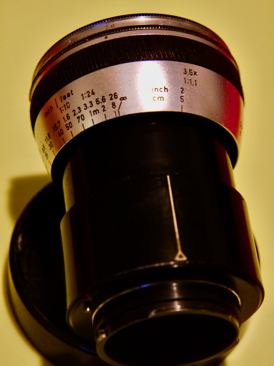 Leider benutze ich das leichte filigrane Objektiv viel zu selten, obwohl es mit seinem EXA-Bajonett sogar an Canon-EF DSLRs mit entsprechenden Adaptern unendlich erreichen kann.