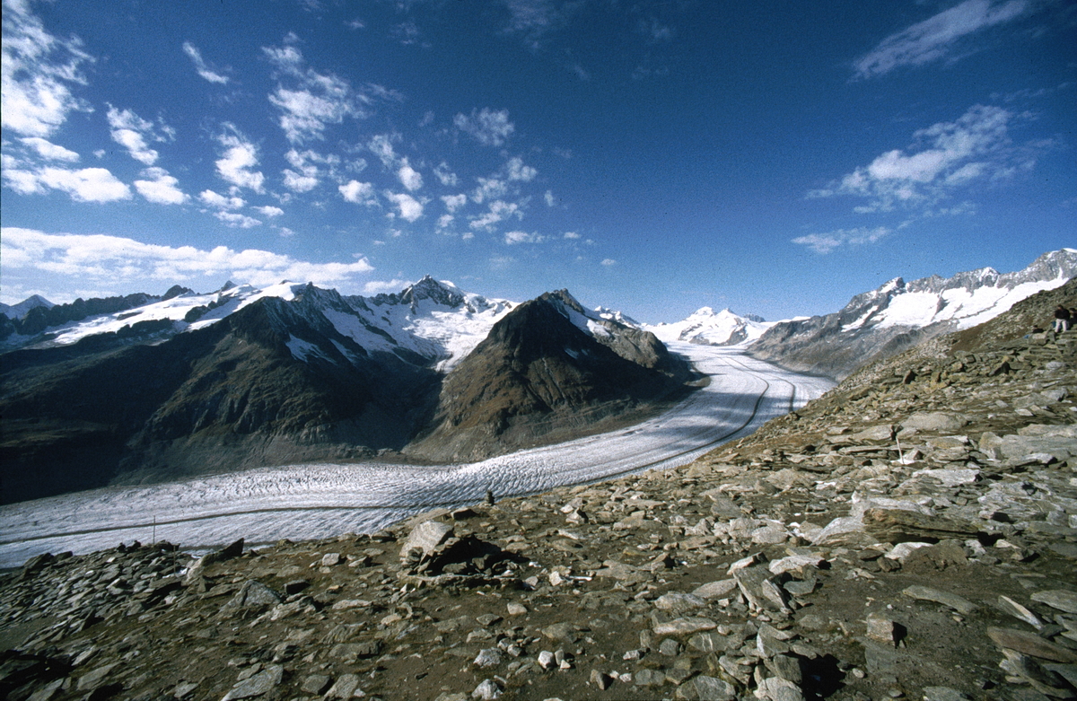 Dieses Objektiv ist sehr Streulicht empfindlich. Es sollte abgeblendet benutzt werden. In "analoger Zeit" war das kein Problem. Das Dia habe ich vor ca. 20 Jahren am Aletschgletscher gemacht.