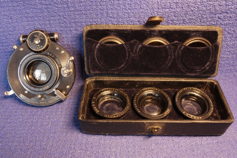 Wir gehen heute selbstverständlich bei Digital- und Analog- Kameras davon aus, dass ein Zoom-Objektiv verbaut ist, vielleicht noch nicht bei Smartphones, in den früheren Jahren der Fotografie, insbesondere im Bereich Plattenkameras, war Brennweitenwechsel und damit auch Bildwinkelwechsel noch nicht selbstverständlich, die meisten (viele?) Plattenkameras? verfügten nicht über einen Auszug, der erst Aufnahmen mit herausgenommener Vorderlinse erlaubten. Die Objektive mussten auch geeignet sein.
