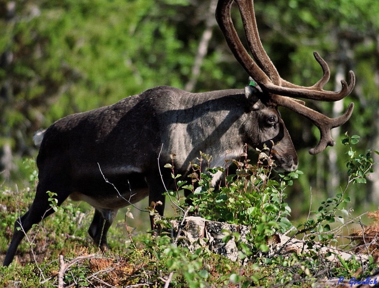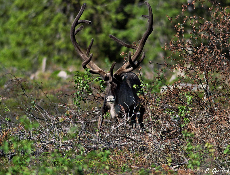Den Renbullen auf den Bildern habe ich aber bei einem Streifzug zu Fuß durch die Natur eingefangen. Ein Einzelgänger. Solch ein Geweih sieht man auch hier nicht alle Tage. Er hat vermutlich schon ein paar Jahre mehr auf dem Buckel als die anderen Rentiere, denen man hier gelegentlich begegnet und hat sich wohl den regelmässigen Zusammentrieben zur Schlachtung entzogen.