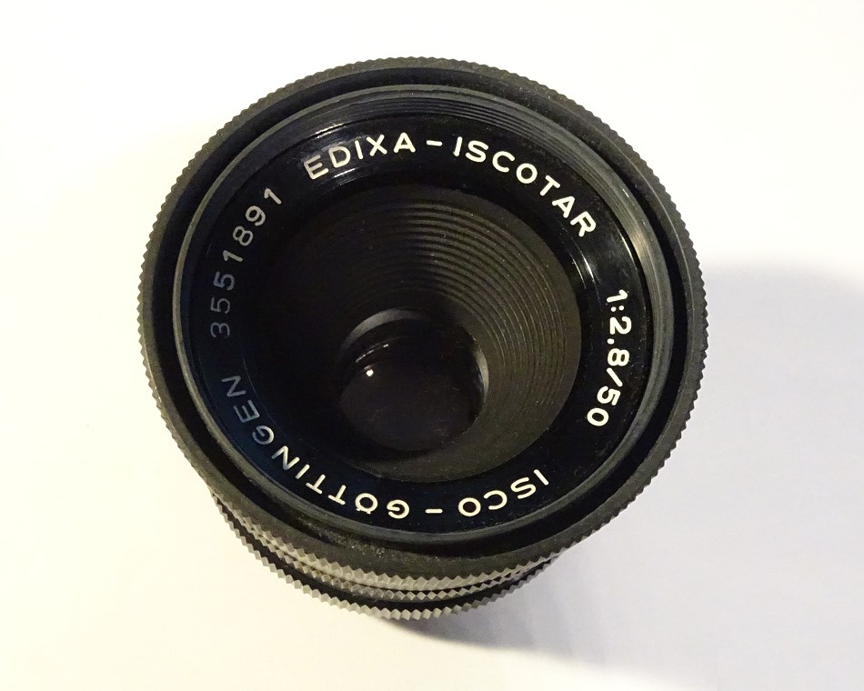 auch hier wieder der Restzweifel, ob man das Objektiv "Edixa Iscotar" oder "Isco Göttingen Edixa Iscotar" nennen sollte. Das Kleinbildobjektiv mit M42 Gewinde hat einen Entfernungsbereich von 0,8 Meter bis unendlich. Rastbarer Blendenbereich 2,8 - 16.