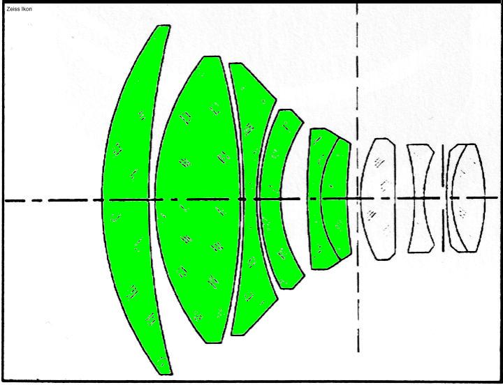 Danach hatte man mit dem 4 Linsigen Tessar Objektiv noch zusätzliche 6 Linsen und ca. 150g Mehrgewicht an der zierlichen Contaflex und die Abbildungsleistung ist, nun ja, recht bescheiden. Zeiss Ikon riet ausdrücklich zu einer "starken Abblendung" beim Benutzen des Vorsatzteleskops.