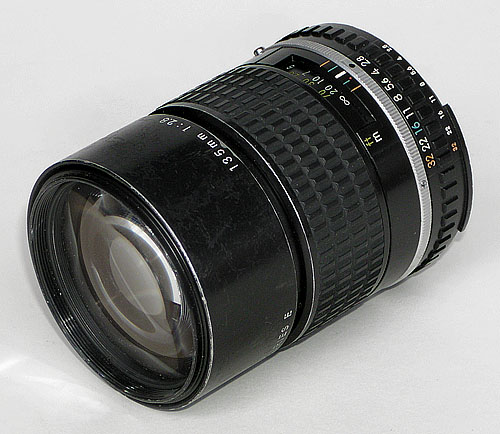 Lichtstarkes 135 mm Telelobjektiv mit fester Brennweite für Nikon 24x36 mm Spiegelreflexkameras mit Offenblendenmessung. Die Frontlinse des Objektivs dreht sich beim Fokussieren nicht mit, wodurch die Verwendung eines Pol- oder Verlauffilters zb. bei Landschaftsaufnahmen problemlos möglich ist.