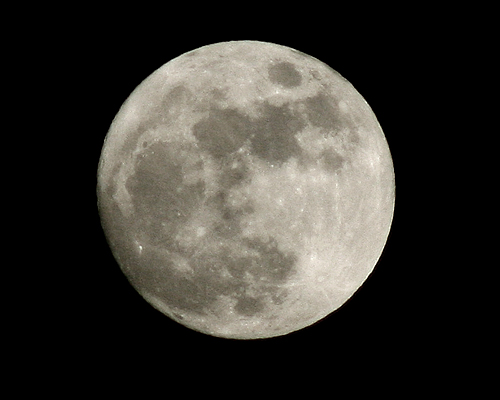 Die Schärfeleistung des Objektivs ist auch bei offener Blende zufriedenstellend. Die Aufnahme des Vollmonds entstand mit Blende 5,6, 1/1000 sek mit 400 ISO mit der EOS 400 D mit manueller Belichtungseinstellung und Autofocus.