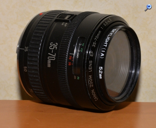 Typ: Dreh-Zoomobjektiv mit eingebautem Elektromotor Brennweite: 35 mm - 70 mm Baujahr: ab 1987 bis ? Optische Konstruktion: 9 Linsen in 8 Gruppen Naheinstellgrenze: 0,39 m Blendenlamellen: 5 Frontlinsenfokussierung (Filter dreht mit!) Blendenbereich: 3,5-4,5 -- 29 Filtergewinde M 52 Maße: Länge (max) 6,3 cm Durchmesser: 6,9 cm Gewicht: 245 g