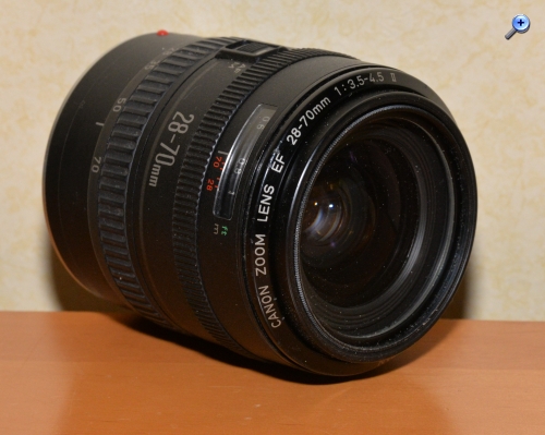 Typ: Dreh-Zoomobjektiv mit eingebautem Elektromotor Brennweite: 28 mm - 70 mm Baujahr: ab 1988 bis ? Optische Konstruktion: 10 Linsen in 9 Gruppen Naheinstellgrenze: 0,39 m Blendenlamellen: 6 Frontlinsenfokussierung (Filter dreht mit!) Blendenbereich: 3,5-4,5 -- 29 Filtergewinde M 52 Maße: Länge (max) 7 cm Durchmesser: 7,6 cm Gewicht: 285 g