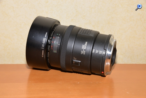 Typ: Schiebe-Zoomobjektiv mit eingebautem Elektromotor Brennweite: 35 mm - 105 mm Baujahr: ab 1988 bis ? Optische Konstruktion: 14 Linsen in 11 Gruppen Naheinstellgrenze: 0,85 m Blendenlamellen: 5 Frontlinsenfokussierung (Filter dreht mit!) Blendenbereich: 3,5-4,5 -- 29 Filtergewinde M 58 Maße: Länge (max) 8,2 cm Durchmesser: 7,3 cm Gewicht: 400 g