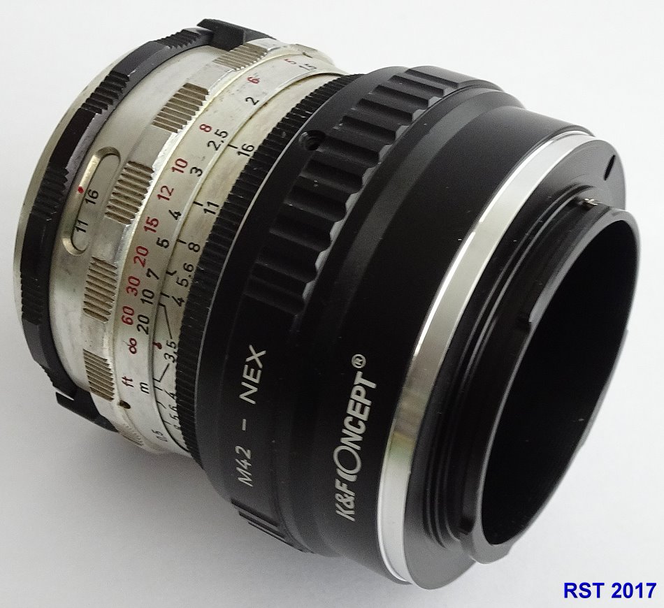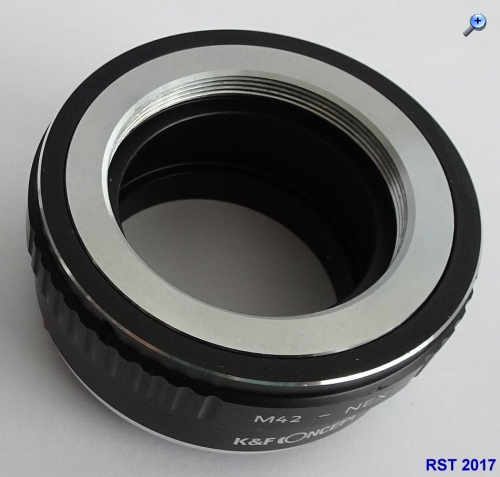 dieser Adapter (Montierungs-Konverter) kann M42-Gewinde-Objektive an das Sony-NEX (also auch an Sony E-mount) anpassen. Dabei geht aber teilweise die Elektronik-Steuerung verloren. Die Digital-Kamera kann manuell (Blende, Zeit, Entfernung) eingestellt werden.