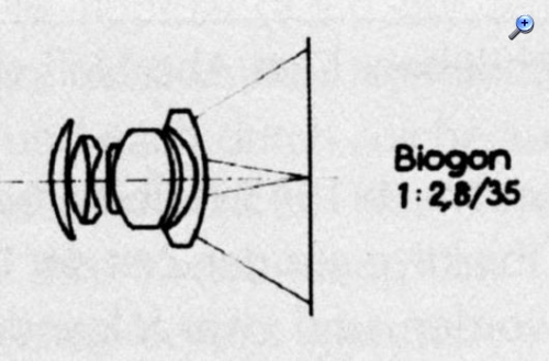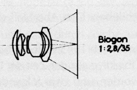 Da die neue Contax Reihe (also IIa und IIIa) ein wesentlich flacheres Gehäuse besitzt als die Vorgängerversionen kam man bei Zeiss Ikon nicht umhin das beliebte 35mm Objektiv neu zu rechnen, da das Vorkriegs-Biogon eine zu große Baulänge hatte. Aus diesem Grund passen die oft preisgünstig angebotenen Jupiter-Weitwinkel nicht an die Nachkriegs-Contax. Wie alle Objektive für die Contax ist auch das Biogon ein Meisterwerk. Der edle Glanz polierten Aluminiums und die optischen Qualitäten des schon legendären Weitwinkelobjektivs lassen die vergleichsweise umständliche Bedienung an der Contax schnell vergessen. Zwar ist die Entfernungseinstellung mit dem Meßsucher gekuppelt, die abschließende Motivgestaltung muß jedoch durch einen Aufstecksucher vorgenommen werden.