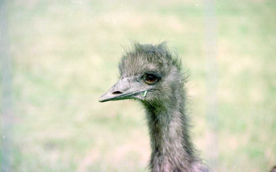Nandu (der südamerikanische Strauß, eine nicht verwandte Parallelentwicklung) in der Eifel unweit Ramersbach. Bei sog. Reiseobjektiven sprechen selbsternannte Fachleute bisweilen von "Flaschenscherben".