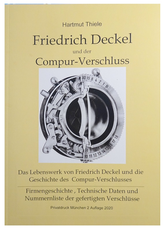 der Privatdruck von Hartmut Thiele "Friedrich Deckel und der Compur-Verschluss", 2. Auflage von 2020 beschreibt auf 110 Seiten Leben und Werk von Friedrich Deckel mit Fokus auf den mechanischen Compur-Schluss in seinen diversen Modell-Varianten. Mit zahlreichen Abbilungen und technischen Skizzen.
