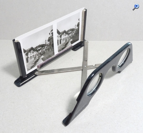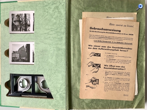 Dazu gehört ein aufschiebbarer Betrachter und ein Beschreibungs-Heftchen. Auf jeder Stereo-Fotorückseite gibt es eine Erläuterung zum Motiv.