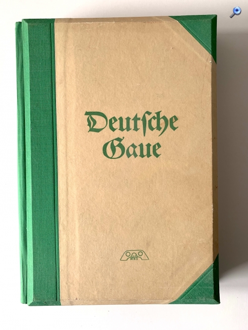 vielen Dank, sehr interessant – ich wusste nicht, dass es aus der Reihe auch ein Mappenwerk gab. Es handelt sich hier vermutlich um eine kleine Ausgabe des Raumbild-Albums Deutsche Gaue von 1938. Ich erlaube mir, diese Ausgabe danebenzulegen: