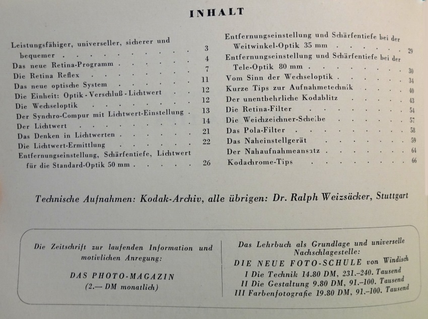 der Heering-Verlag brachte 1958 das Büchlein "Retina-Tipps" für die Kodak-Nagel-Retina-Serie heraus. Die Retina 1A, 1B, 2c, 3c und Retina Reflex werden beschrieben.