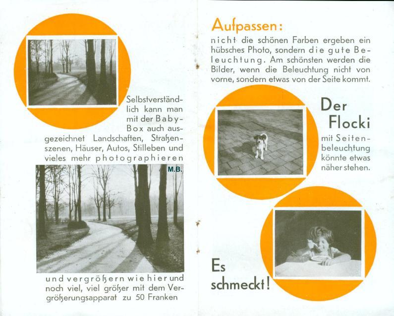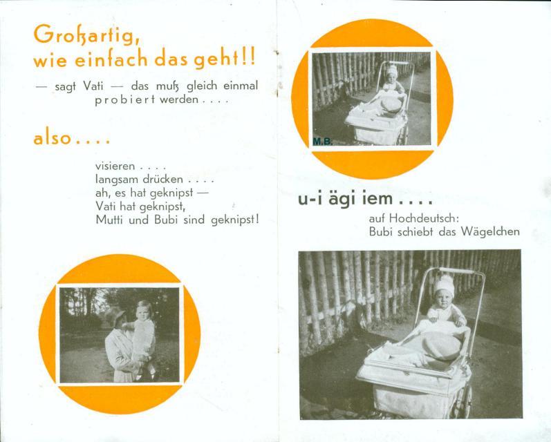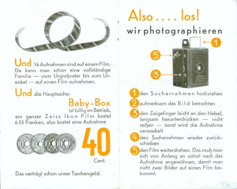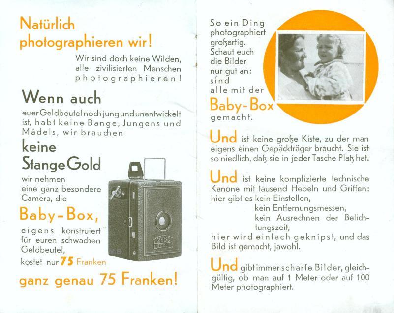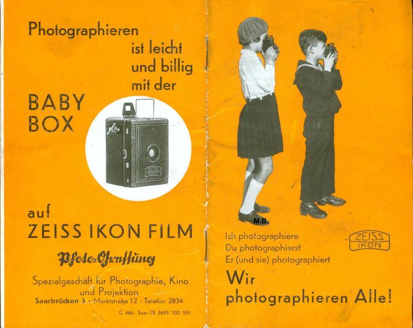 Anbei ein skurilles Prospekt für die Zeiss Ikon Baby Box von ca. 1932 speziell für das damals französische Saarland.