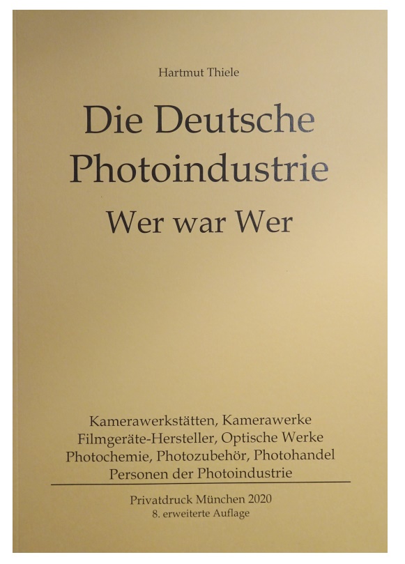 nachdem ich mein damaliges Exemplar (ich glaube die dritte Auflage) des Thiele "Die deutsche Photoindustrie, Wer war Wer" 2007 bei einem Umzug verloren hatte, bin ich jetzt endlich wieder im Besitz eines Exemplars (direkt von Hartmut Thiele) gekommen, immehin Auflage vier. Aktuell ist die Auflage 6 - die ist aber leider vergriffen.