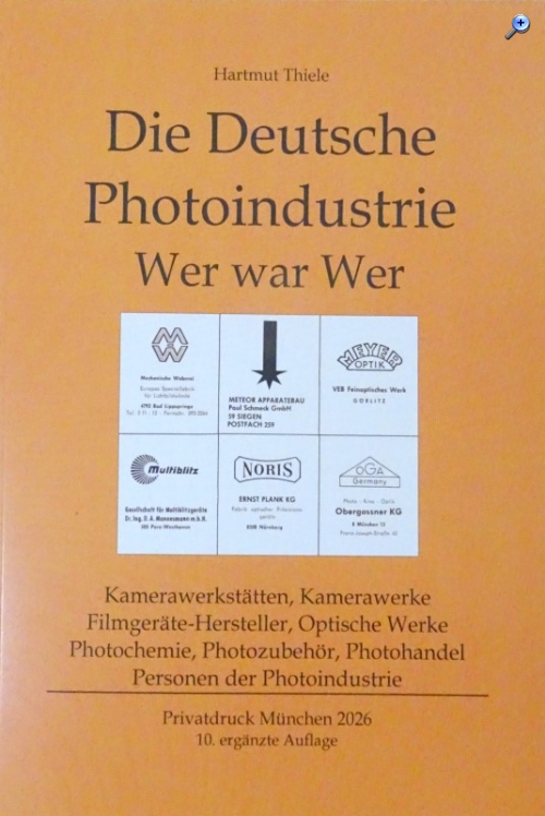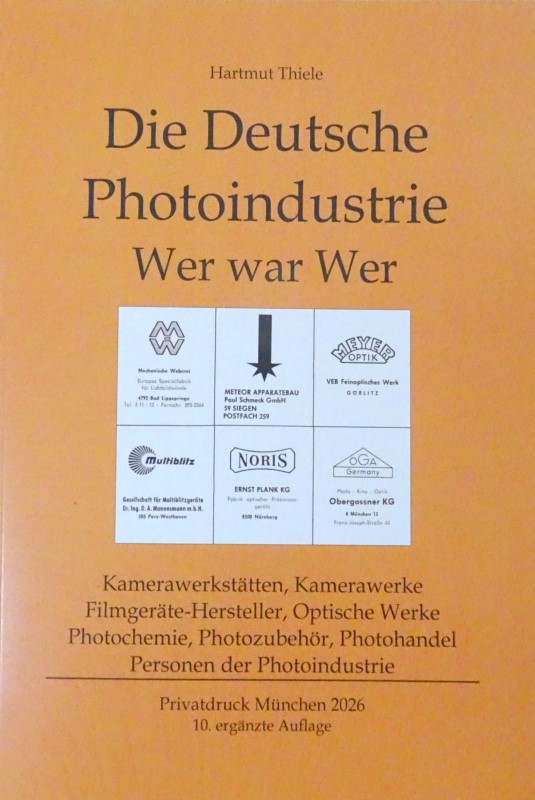 das Buch von Hartmut Thiele "Die deutsche Photoindustrie, Wer war Wer" ist 2026 als erweiterte 10. Neuauflage herausgekommen und z.B. bei Lindemanns erhältlich. Jetzt mit 174 Seiten, also 4 Seiten mehr als z.B. in der 8. Auflage. Die Auflage 9 enthielt 1021 Firmen.