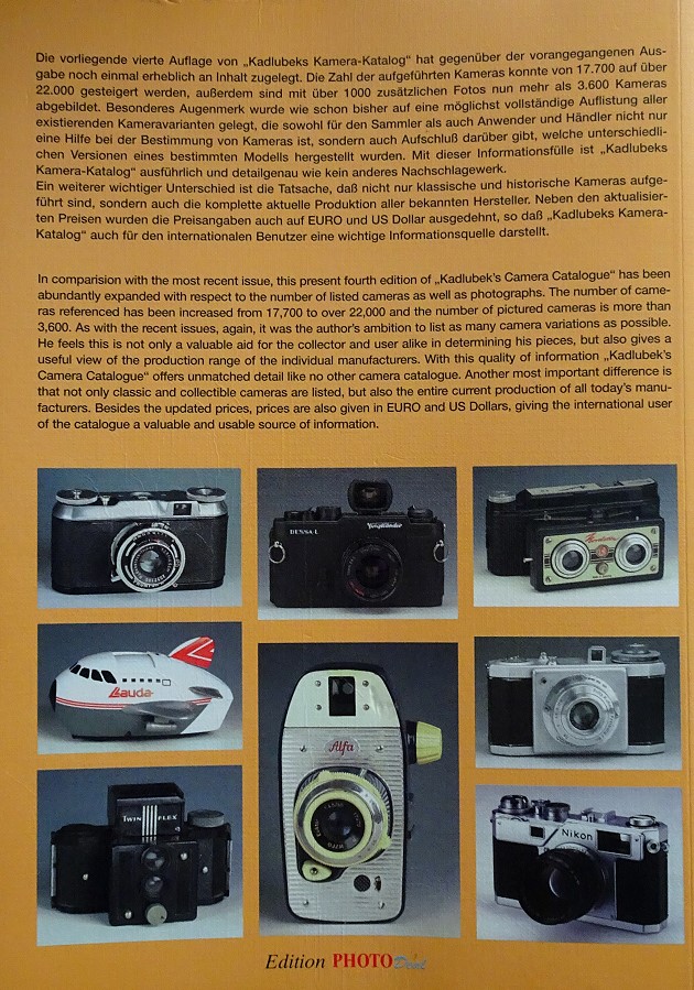 leider wohl endgültig vergriffen: Der "Kadlubeks Kamera-Katalog", von Günter Kadlubek, hier die Auflage 5 von 2004 mit 984 Seiten, 4800 Fotos, 26000 Kameras.