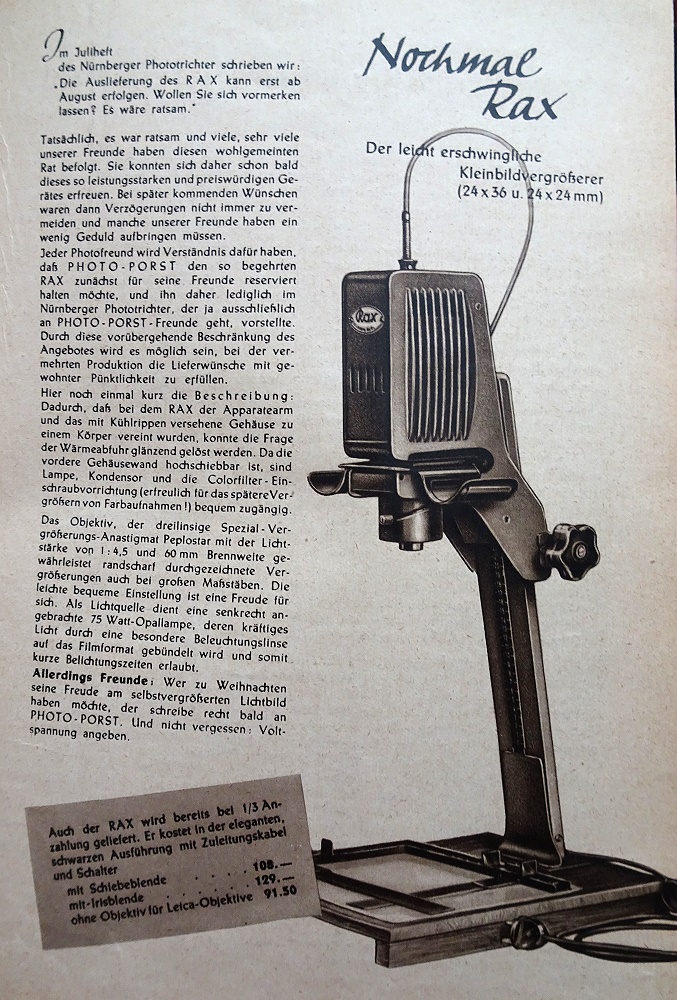die Hauszeitschrift von Photo Porst aus Nürnberg. Ich habe in gebundener Form die Vierteljahres-Hefte von 1950-1953.
