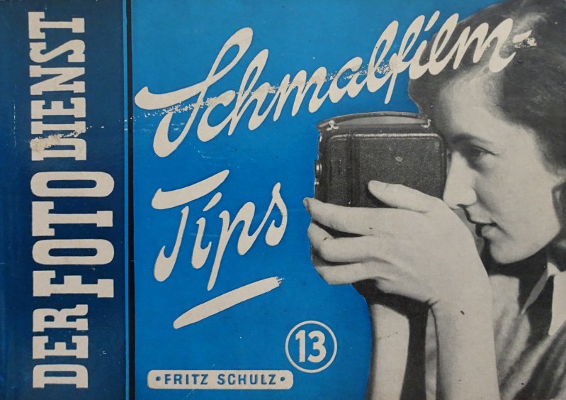 ein kleines Büchlein von Fritz-Schulz "Schmalfilm-Tipps", von "Der Foto-Dienst 13, Heering-Verlag, 1950, 63 Seiten zur Normal-8-Technologie.