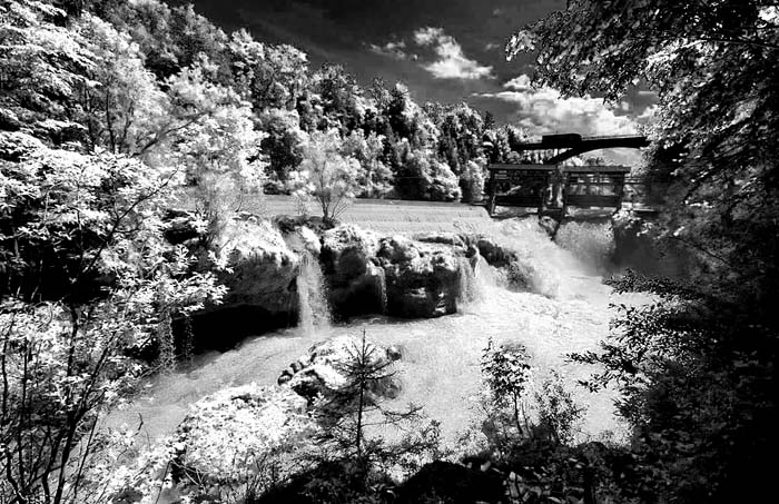 Früher (1965-85) habe ich zahlreiche Schwarzweiß Infrarot-Landschaftsbilder auf Kodak Infrarotfilm gemacht. Das Besondere an diesen Bildern ist die dramatische Stimmung mit fast schwarzem Himmel und der sehr hellen Wiedergabe vom Grün der Bäume.